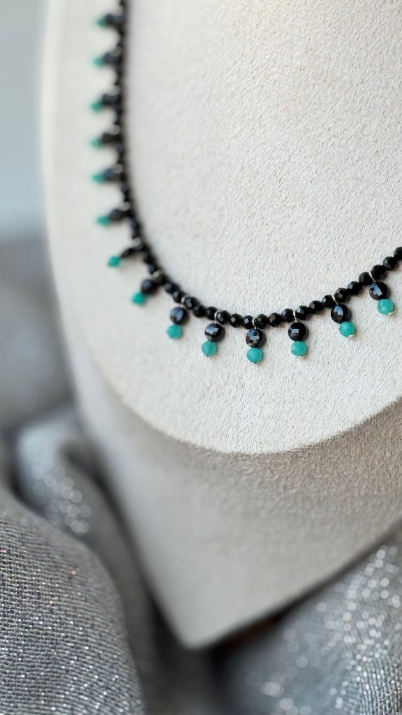 Amazonite is believed to bring a sense of tranquility and harmony to its wearer. It is associated with calmness, balance, and emotional well-being. In various belief systems, it is considered a stone of courage and empowerment, often associated with female empowerment and self-expression.